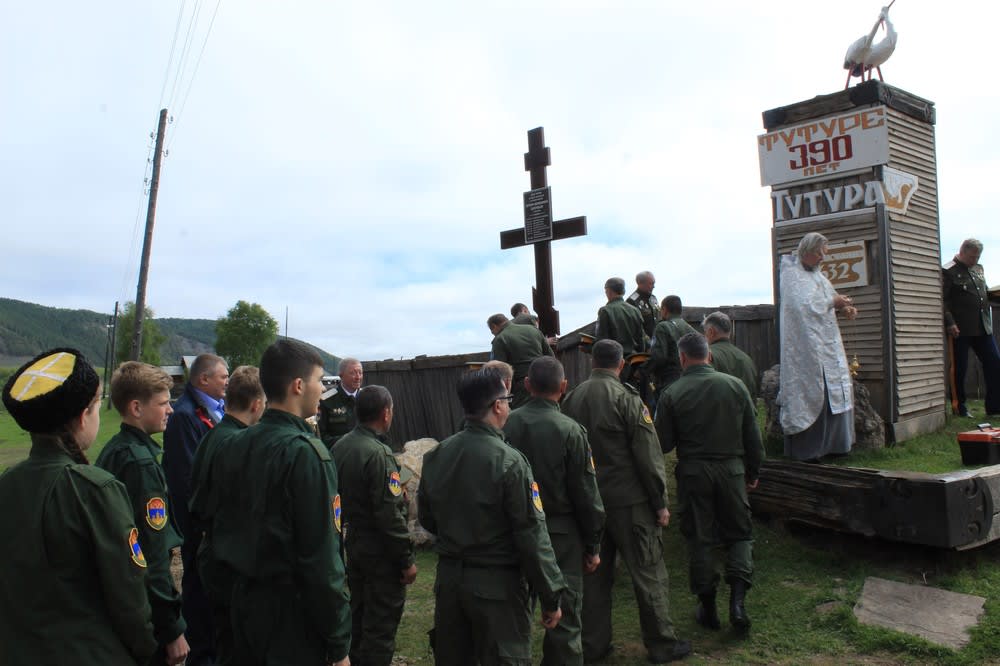 Деревянная стела с надписью «Тутура. Год основания 1632» встречает путников, пересекших понтонный мост через Лену. Теперь рядом с ней стоит крест – напоминание, что село было основано енисейским казаком-первопроходцем Петром Бекетовым. Мемориал освятили и официально открыли 4 июня, в день 390-летнего юбилея села.
