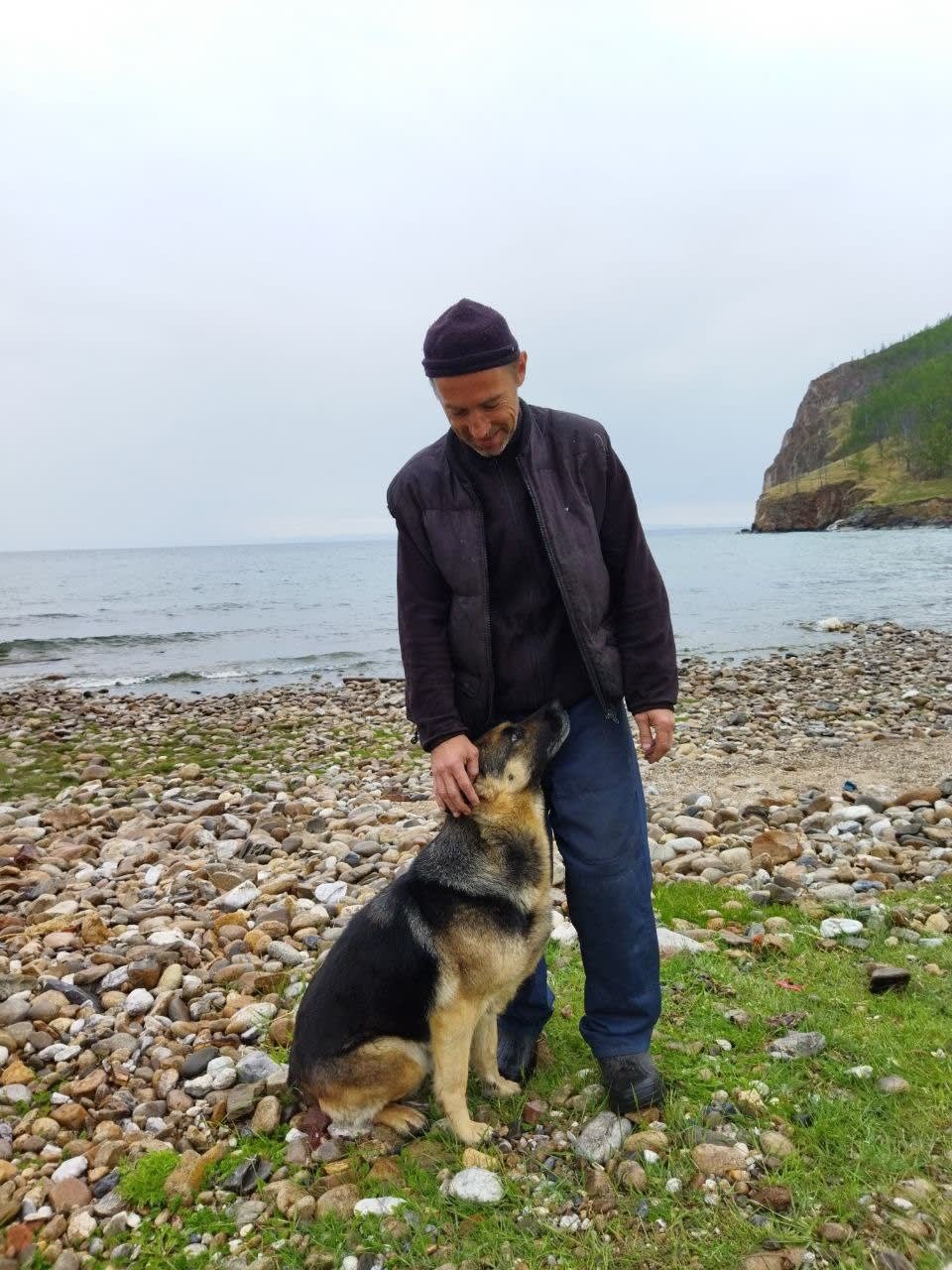 «Это имя – сокращение от ласкательного грузинского слова. Собака откликается. Как её зовут по-настоящему, я не знаю… Её ольхонская история началась в январе, когда на Байкале вовсю шёл ледостав. Но покров ещё не был прочным, и отдельные льдины носило ветром. На таких льдинах однажды вечером я и увидел две чёрных точки. Они приближались с севера. Через несколько часов точки оказались собаками. Я наблюдал за ними, когда они сошли на берег: отощавшие, еле стоявшие на ногах. Самая крупная стала… глодать кору на дереве! Я не смог остаться в стороне. Покормил. «Короед» оказался кобелём, недоверчивым и самостоятельным. Отлежавшись, он начал исследовать территорию и однажды увязался за группой туристов. Позже я узнал, что кобель вернулся к хозяину, который живёт с другой стороны пролива Малое Море, в деревне Зама. Мне рассказали, что владелец и не надеялся увидеть пса и считал, что тот утонул. Вторая собака, по рассказам, также принадлежит этому человеку, и он намеревается за ней приехать. Ждём», – говорит Андрей