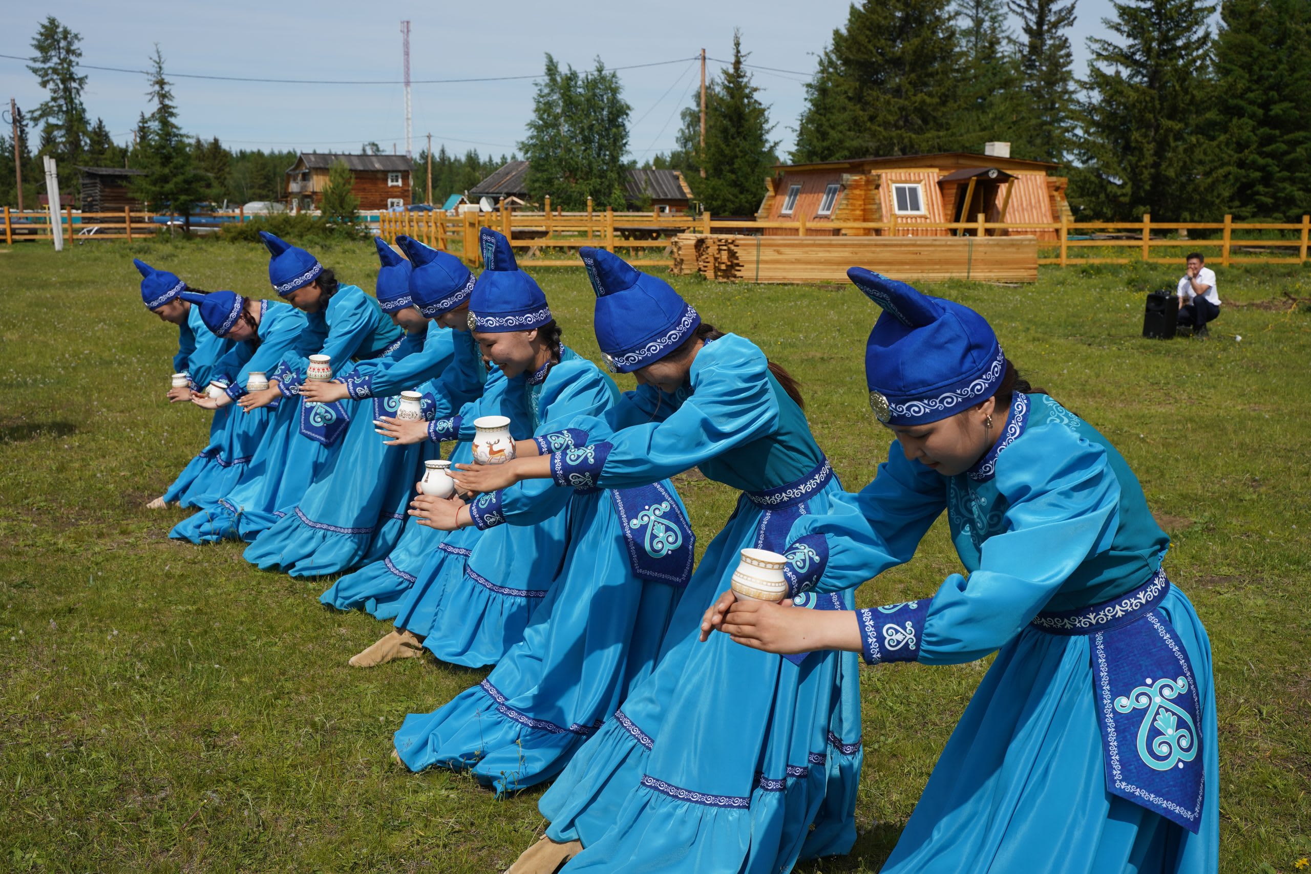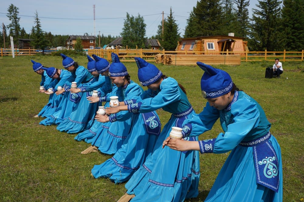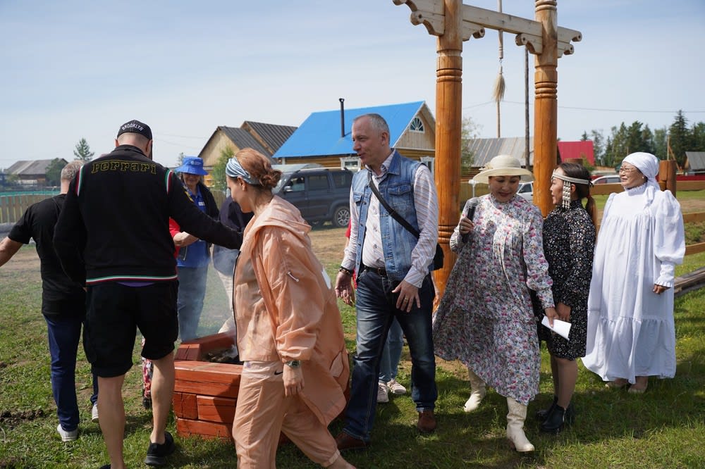 Глава поселения Агния Смирнова рассказала о народных обрядах, традициях села. Накануне там, как и по всей республике, отмечали официальный национальный праздник Солнца Ысыах – начало лета, Новый год для жителей Якутии. В нынешнем году он посвящен 100-летию республики. Но для долгожданных гостей жители села провели некоторые обряды праздника. Артисты прошли очищение огнем, им подарили обереги, сделанные мастерами Тас-Юряха, для них спели и станцевали.