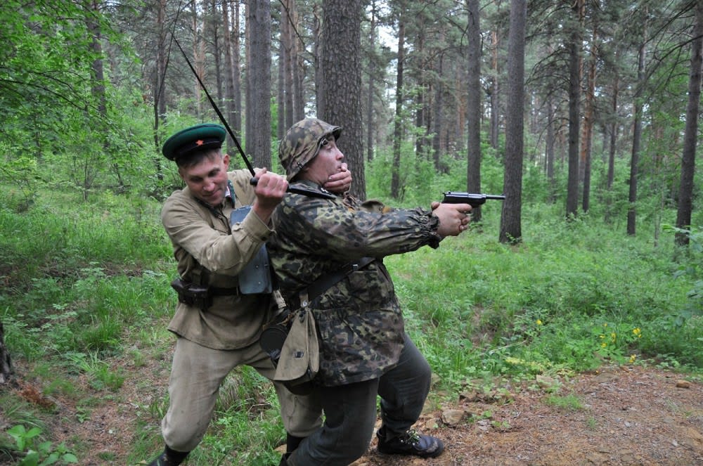 События первой части тактического мероприятия развернулись на площадке неподалеку от питомника собак К-9. На несколько часов лесная опушка под Иркутском стала приграничной белорусской пущей, где в конце июня 41-го гремели бои. Тогда моторизованные немецкие корпуса форсировали руку Буг. Немецкие дивизии, используя свое превосходство в технике, прорвали оборону Красной армии и, обходя отдельные очаги сопротивления, рвались к Минску. Разрозненные подразделения Красной армии с боями выходили из окружения. Плечом к плечу сражались пограничники, военнослужащие стрелковых частей НКВД, пехота…