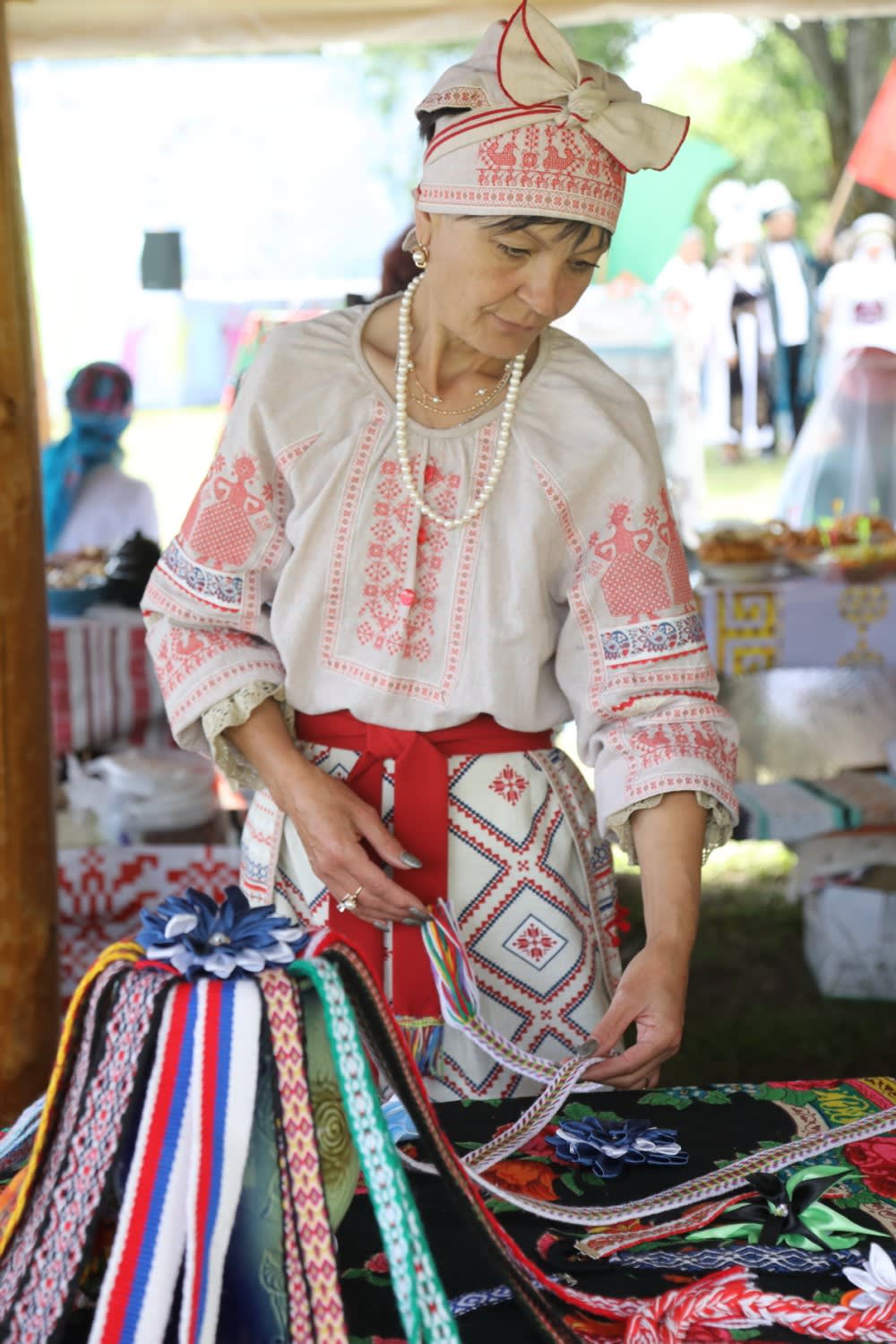 Ольга Аверьянова работает в недавно открытом удмурдском национально-культурном центре села Холмогой, где проживает 67 удмуртцев. Она – портниха, использовала свое мастерство, чтобы представить на фестивале коллекцию повседневной женской удмурдской одежды и свадебный головной убор – айшон. И стала победителем.