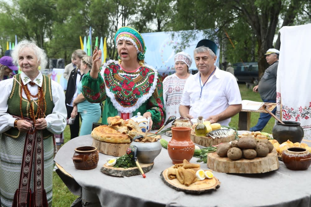 Чуваши приготовили закрытый пирог хуплу, колбасу тултармаш, соленые вареники с творогом и луком, морковные блины, блюда из айвы, куколь, пирожок со свеклой, брусникой и медом, а также холодный суп на кефире.