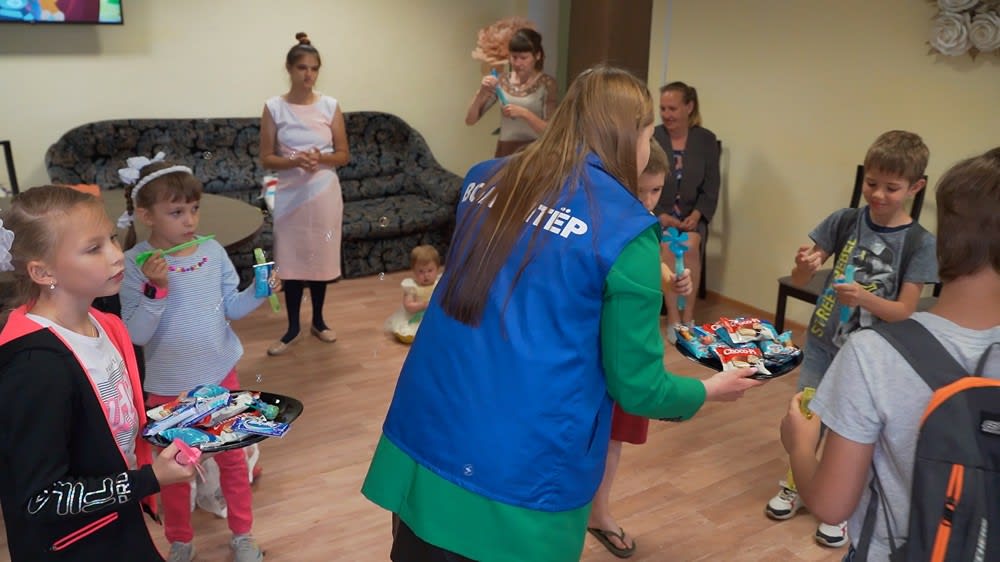 Временно проживающими в центре «Колыбель» детям и их родителям волонтеры компании привезли не только подарки, но и угощения. Ребята всех возрастов с удовольствием рисовали мелом свои мечты и соревновались в надувании самого большого мыльного пузыря.