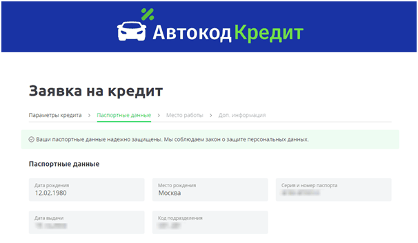 - Паспортные данные. Сервис передаст сведения только в интересующие вас банки, поэтому информация не попадет третьим лицам.