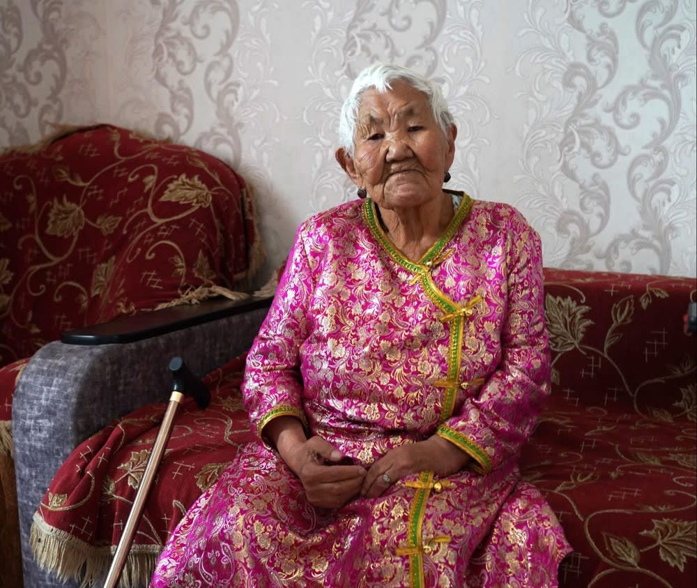 Еще одна труженица тыла из Енисея Юнайда Николаевна Хепхеева отметила 90-летний юбилей. Веселая, красивая бабушка встретила нас в национальном костюме.
