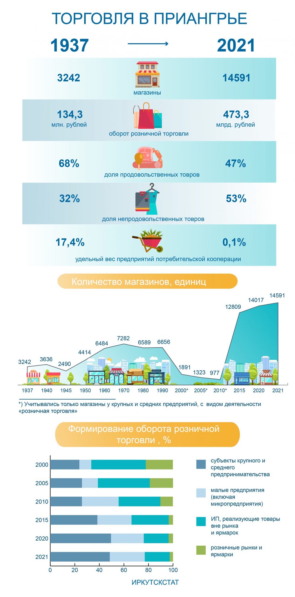 Наталья Дроздова отметила, что динамика устойчивого развития отрасли в Иркутской области наблюдалась на протяжении последнего десятилетия. Сейчас средняя обеспеченность региона площадями торговых объектов в два раза превышает нормативы, а в крупных городах почти в три раза. На 1 июля в Прибайкалье работало 12 тыс. организаций сферы торговли, 24 тыс. индивидуальных предпринимателей.