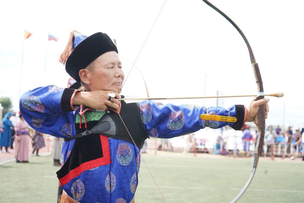Наша спортивная делегация приняла участие в соревнованиях по бурятской борьбе «Бүхэ барилдаан», стрельбе из лука по бурятским правилам «һур харбаан», конном спорте «Мори урилдаан», шахматах «Шатар», традиционных состязаниях по разбиванию хребтовой кости «һээр шаалган»ар и игре в кости «Шагай наадан».