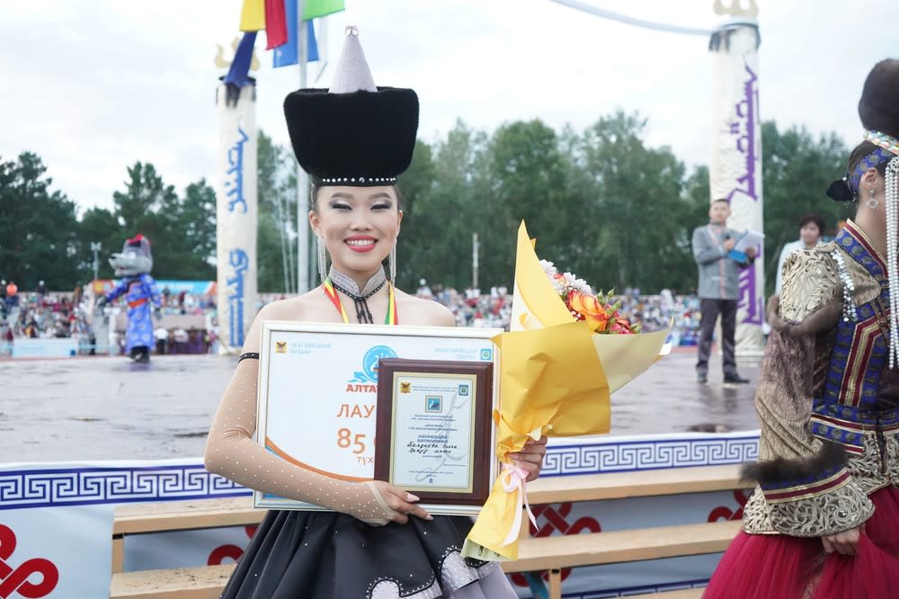 Конкурс красавиц «Дангина» – всегда один из самых зрелищных на фестивале. В нем участвовали 13 девушек от 16 до 22 лет. Они демонстрировали красоту и таланты: мастерство исполнения песен и танцев, но главное – знание бурятского языка, традиций и обычаев своего народа. Гран-при получила участница из Монголии. Еще четыре девушки вошли в число лауреатов. Среди них – 18-летняя Ольга Балдаева, уроженка села Обуса Осинского района.