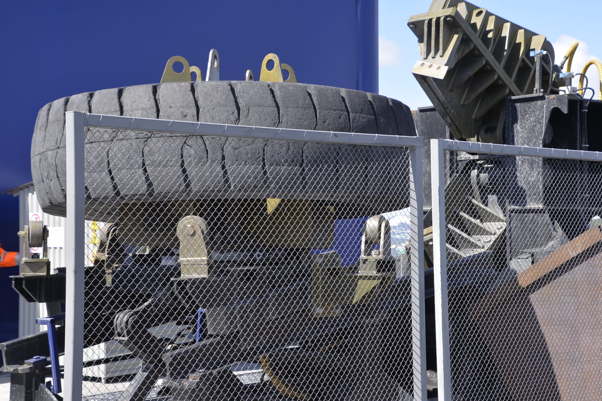 В «Полюс Вернинское» запустили гигантские ножницы для измельчения покрышек от самосвалов