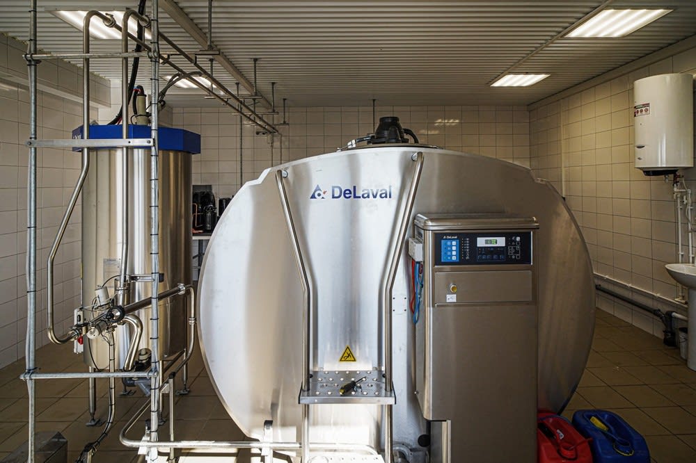 Для доения здесь установлено сразу два робота. Каждый состоит из трех частей: загона, куда заходит корова, так называемой руки со щетками и присосками, а также установки с мини-компьютером и резервуаром для молока. Доение на этой ферме – дело добровольное. Как только животное заходит в загон, сзади опускается шлагбаум, который не дает выйти обратно, а спереди появляется кормушка с «вкусняшками». Буренка отвлекается на еду, тут же в работу вступает «рука». С помощью лазера она находит вымя и моет его щетками. Затем надеваются присоски и начинается дойка. По трубам молоко поступает в специальный резервуар, откуда берется проба. Если с качеством все нормально, оно подается в танк-охладитель. Забракованное молоко, например, молозиво, сливается в специальные емкости, и им потом поят телят.