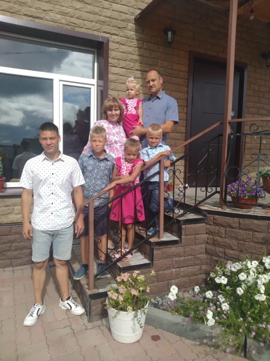 Глава семейства – водитель в «Автоколонне 1950». Оксана Николаевна – медицинская сестра, до декрета работала в Ангарской городской больнице. Старший сын Иван (19 лет) сейчас проходит срочную службу в армии. Петр (16 лет) и Владимир (12 лет) учатся в школе № 36, посещают воскресную школу. Оба получили и музыкальное образование, играют на трубе. Вероника в этом году пошла в первый класс, а младшие – шестилетний Марк и Лилия, которой всего 2,5 года, ходят в детский сад.