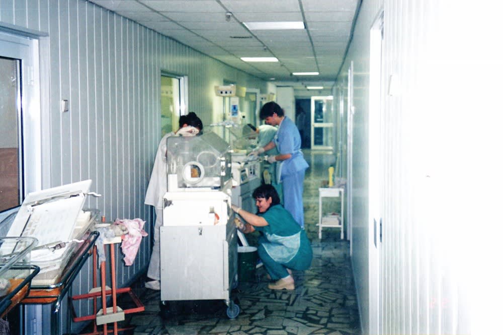 В это время будущий Центр хирургии новорожденных из отделения патологии переехал на первый этаж, в три небольшие комнатки: электрики сделали розетки, врачи прибили полки из досок, повесили простыни вместо перегородок, подключили несколько мониторов, ИВЛ и организовали дежурство, чтобы экстренно поступающих из роддома малышей оперировать сразу. Чуть позже выделили штатное расписание – один врачебный и два сестринских поста.