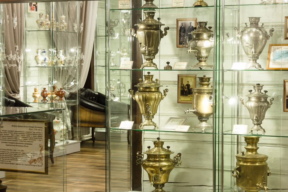Познакомиться с коллекцией самоваров, в которой на постоянной основе представлено порядка 100 экспонатов, можно в любой день – до 20 ноября 2022 года есть возможность насладиться изяществом столовых принадлежностей XIX–ХХ веков, выполненных в технике филиграни. В результате кропотливой и ювелирной работы мастеров, когда тонкие витые проволочки из меди, латуни, мельхиора, серебра, соединялись в прихотливый узор, получались изысканные ажурные изделия. В этой технике создавались не только вазы, шкатулки, конфетницы, подстаканники, но и объемные декоративные панно, а также церковная утварь.