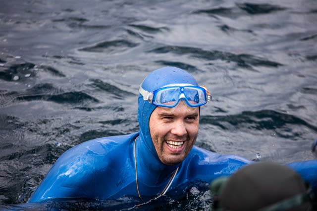 «Сам нырок прошел отлично, в штатном режиме. Наверх получилось даже чуть быстрее, поэтому уложился в 3 минуты», — рассказывает 24-кратный чемпион мира по фридайвингу и обладатель серии рекордов Гиннесса Алексей Молчанов. — «Внизу, на глубине, есть ощущение, что вокруг нет никого. Ничего не видно. Очень холодно. Вообще Байкал для меня особенное место, уникальное. Но он всегда ассоциировался у меня именно со льдом, в прошлом нырял в основном зимой. Сегодня открыл для себя что-то совсем новое».