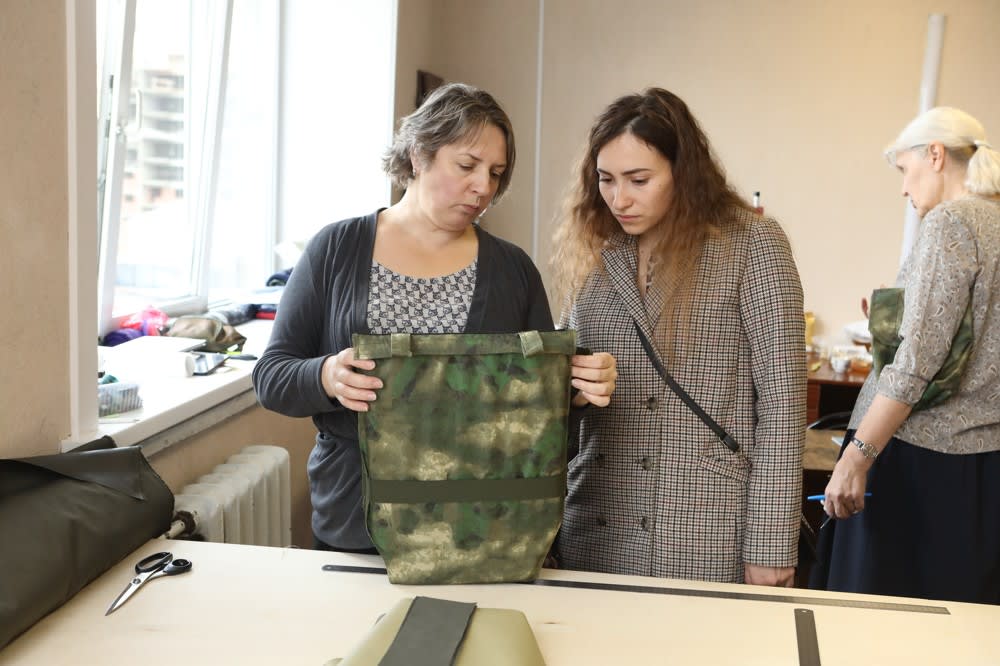 Сейчас Ольга Лебедева курирует других мастериц. Некоторые из них, например, Алена Сотникова, берут работу на дом. Ей нужно доработать подсумки для носилок.