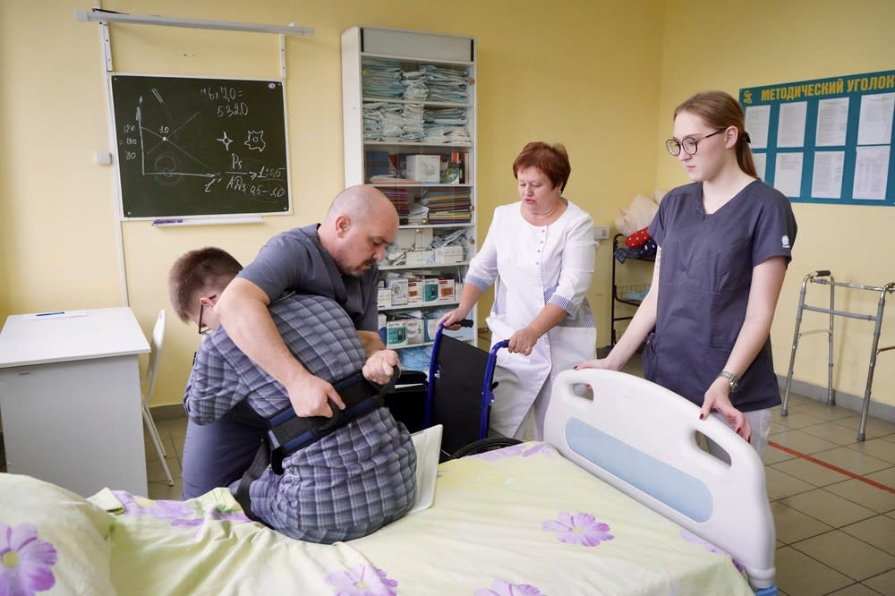Педагогам помогали студенты, отличившиеся на конкурсах профессионального мастерства, в том числе чемпионате «WorldSkills». Например, третьекурсник Иван Таланкин был в роли пациента, или статиста.