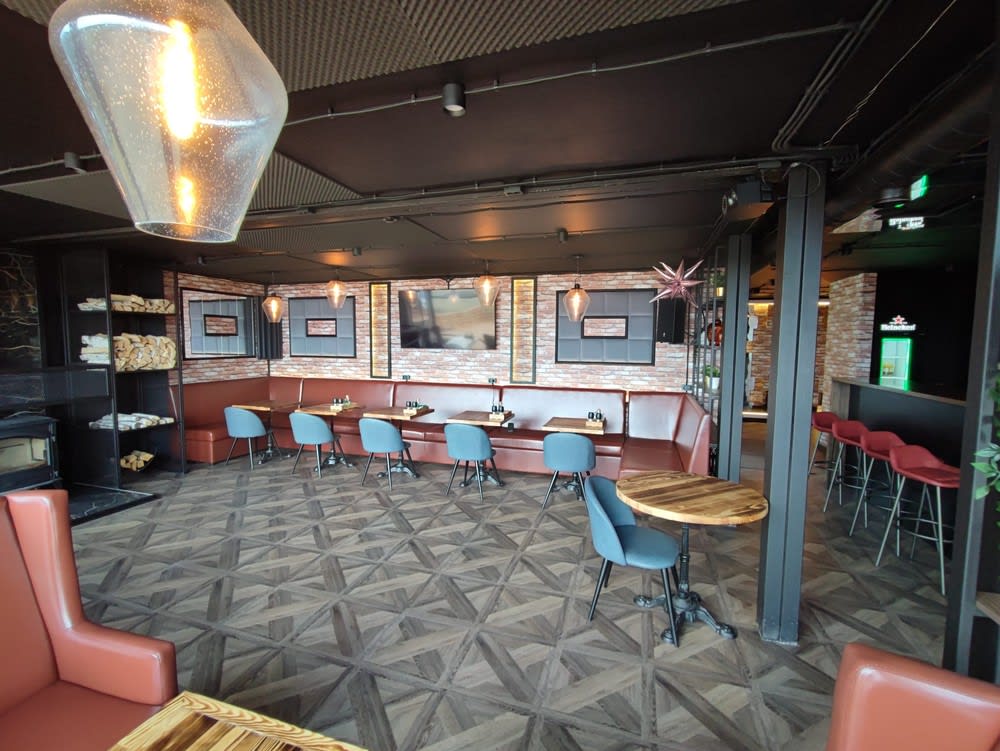 Лаунж-бар на 150 мест открылся в феврале 2022 года. В его основе – модульное здание, неповторимым его сделал именно фирменный стиль, разработанный дизайнером Центра «Мой бизнес». Точкой отсчета концепции стал логотип – танцующая корова. Основой для главного раппорта (узора) стала форма деревянных панелей, которыми обшито здание бара. В итоге заведение – от фасада до сувенирной продукции – приобрело цельность и завершенность. Кстати, идею ироничной, но при этом современной и оригинальной визуализации главного символа бара, как и его название, придумали хозяева отеля.