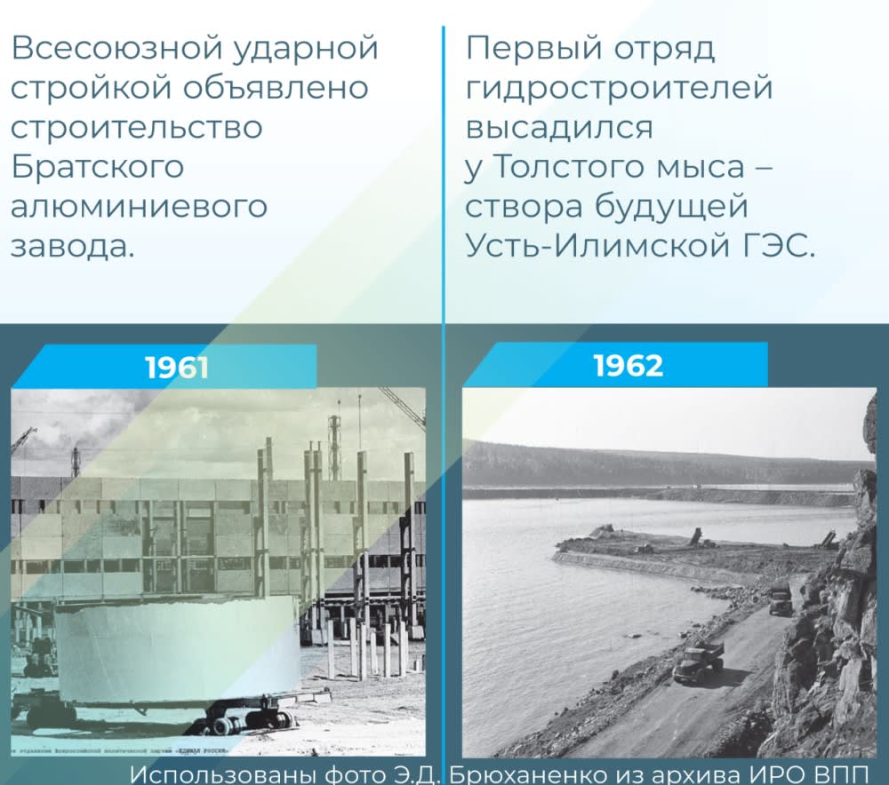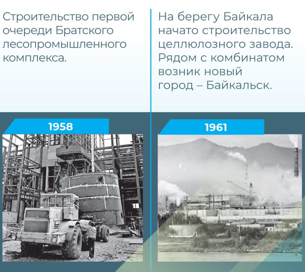 За тридцать лет, с 1950-го по 1980-й, в Иркутской области ударными темпами построены Иркутская, Братская и Усть-Илимская ГЭС, нефте-химический и электролизно-химический комбинаты в Ангарске; Братский, Байкальский и Усть-Илимский целлюлозно-бумажные комбинаты.
