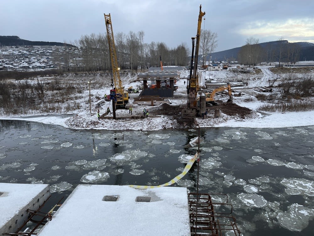 Первым делом губернатор осмотрел мост через Куту, который свяжет поселок Закута и микрорайон Приленский с центральной частью города. Мост был разрушен ледоходом еще в 2013-м. Реконструкция идет по нацпроекту «Безопасные качественные дороги». Из восьми пролетных строений сейчас смонтировано пять, шестая опора в стадии производства. Согласно контракту мост должен быть сдан в ноябре 2023 года, но строительство идет с опережением графика. За ходом работ внимательно следит не только администрация, но и жители Усть-Кута. Для этого на мосту специально установили веб-камеру.