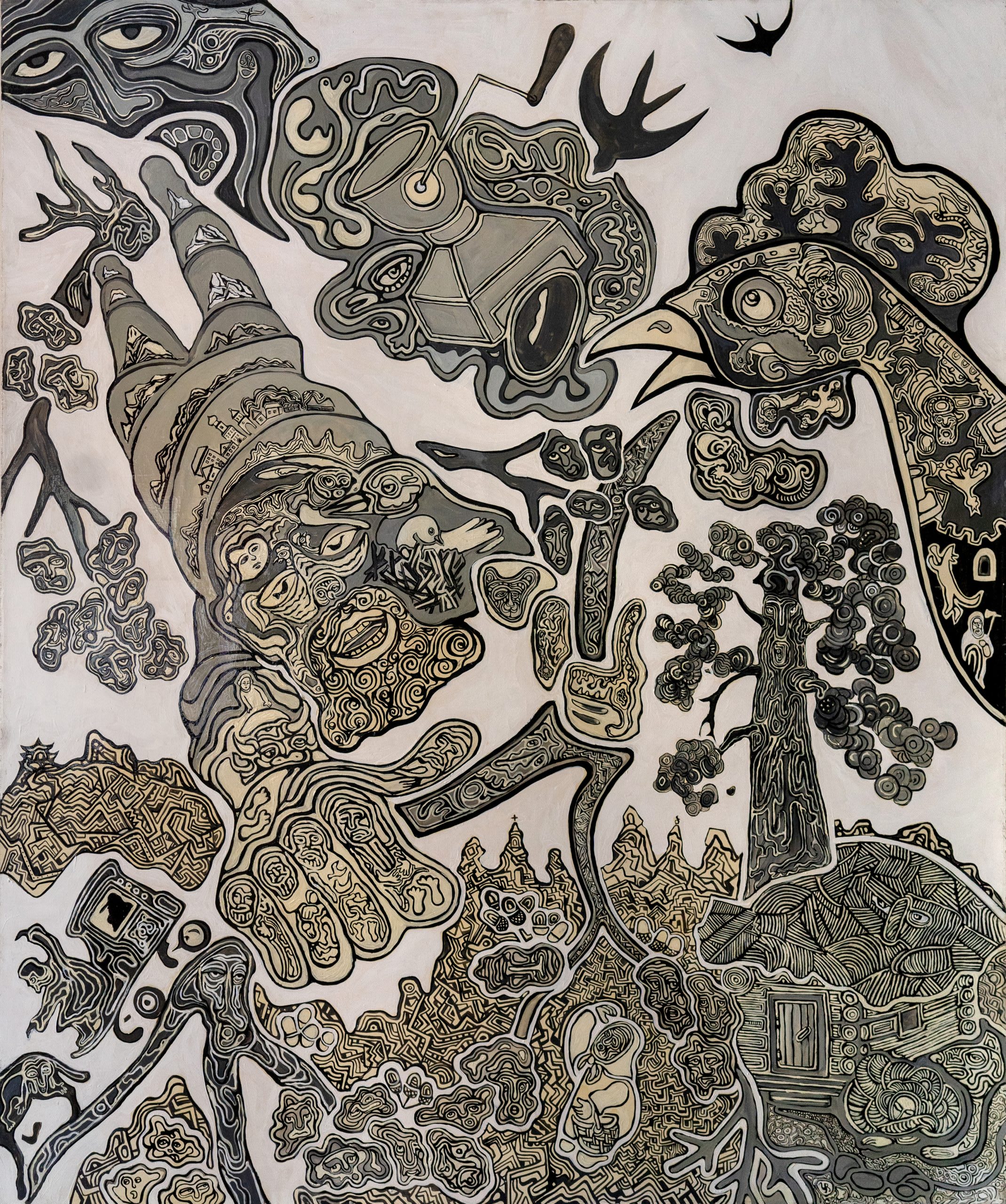 Масштабную миссию поставил перед собой У-Вей Гоби (Андрей Щербаков) – московский художник, писатель, сценарист, педагог-психолог, бывший студент Иркутского художественного училища, открывая арт-выставку в Доме В. Рогаля.