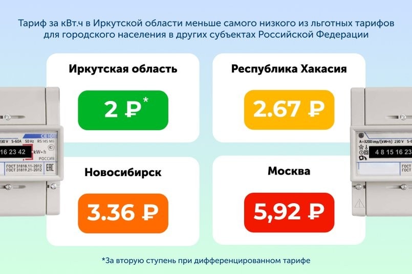 Но насколько вырастет платеж за электричество, если вдруг вы все-таки подключите пресловутые 558 телевизоров? Оказывается, не так уж критично: вторая ступень тарифа с 1 декабря 2022 оценивается на уровне около 2 рублей за кВт.ч (с НДС), что все равно меньше самого низкого из льготных тарифов для городского населения в других регионах Российской Федерации. Жители Хакасии платят за 1 кВт.ч 2,67 рубля. То есть, даже после введения дифференцированого тарифа электроэнергия в Иркутской области останется самой дешевой в стране.