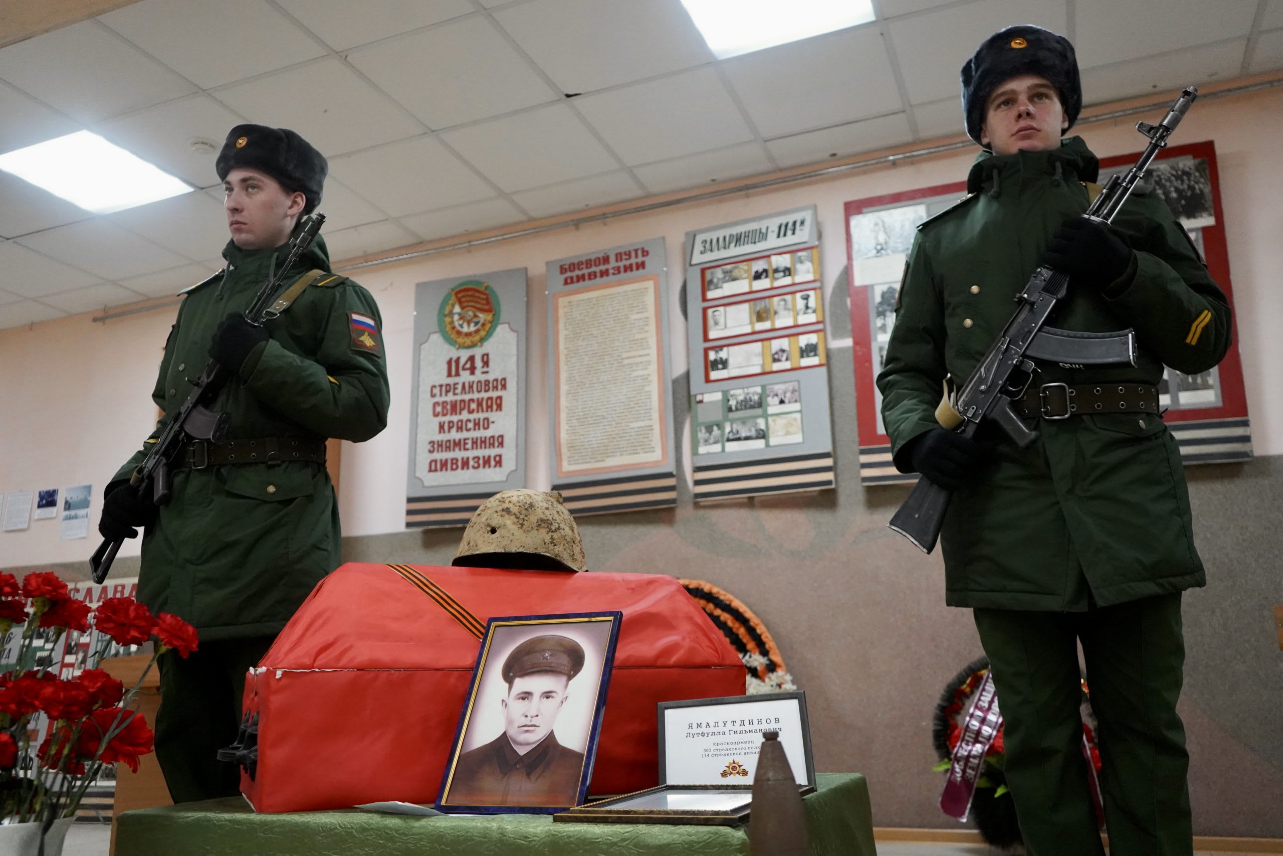 В день похорон солдата в Заларинский ДК «Родник», где проходила гражданская панихида, шли люди с красными гвоздиками в руках. В фойе ДК был установлен саркофаг с останками, его венчала пробитая солдатская каска. Тут же можно было увидеть записку из солдатского медальона, по которой опознали солдата. А еще в фойе была развернута выставка с историей о воинах-земляках, воевавших в легендарной 114-й дивизии.