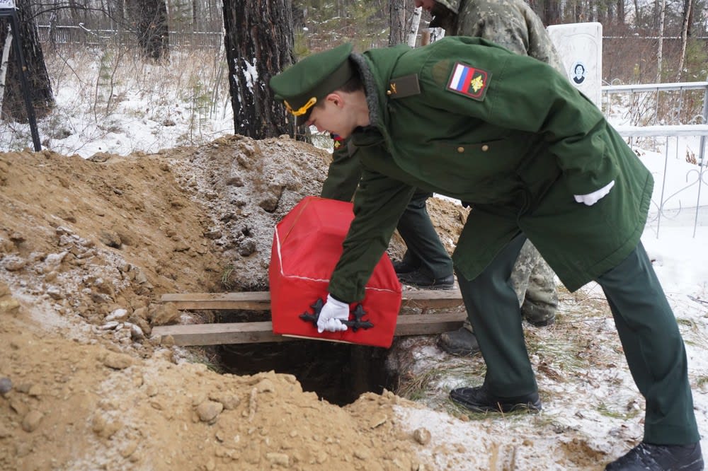 В день похорон солдата в Заларинский ДК «Родник», где проходила гражданская панихида, шли люди с красными гвоздиками в руках. В фойе ДК был установлен саркофаг с останками, его венчала пробитая солдатская каска. Тут же можно было увидеть записку из солдатского медальона, по которой опознали солдата. А еще в фойе была развернута выставка с историей о воинах-земляках, воевавших в легендарной 114-й дивизии.
