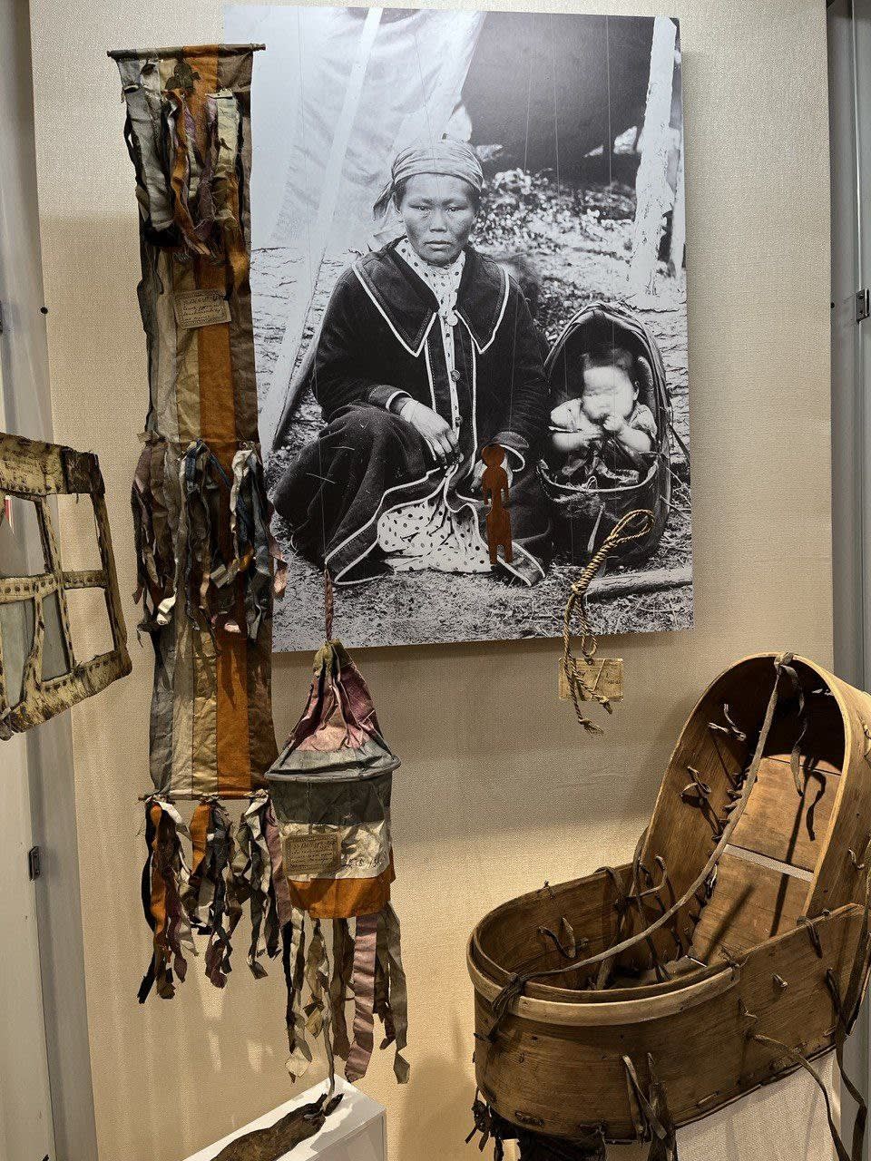 Посетители увидят ритуальные и бытовые предметы с сакральным смыслом, которые принадлежали коренным народам Сибири и Севера. В их числе, кузовок для хранения пуповины новорожденных и последа, детская колыбель, амулет «Атхас» – онгон, предохраняющий от бесплодия и смерти детей.
