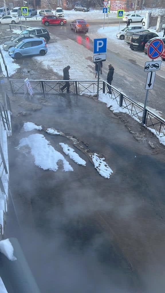 Горячая вода залила улицу Аэрофлоткую в Иркутске из-за аварии на теплосети