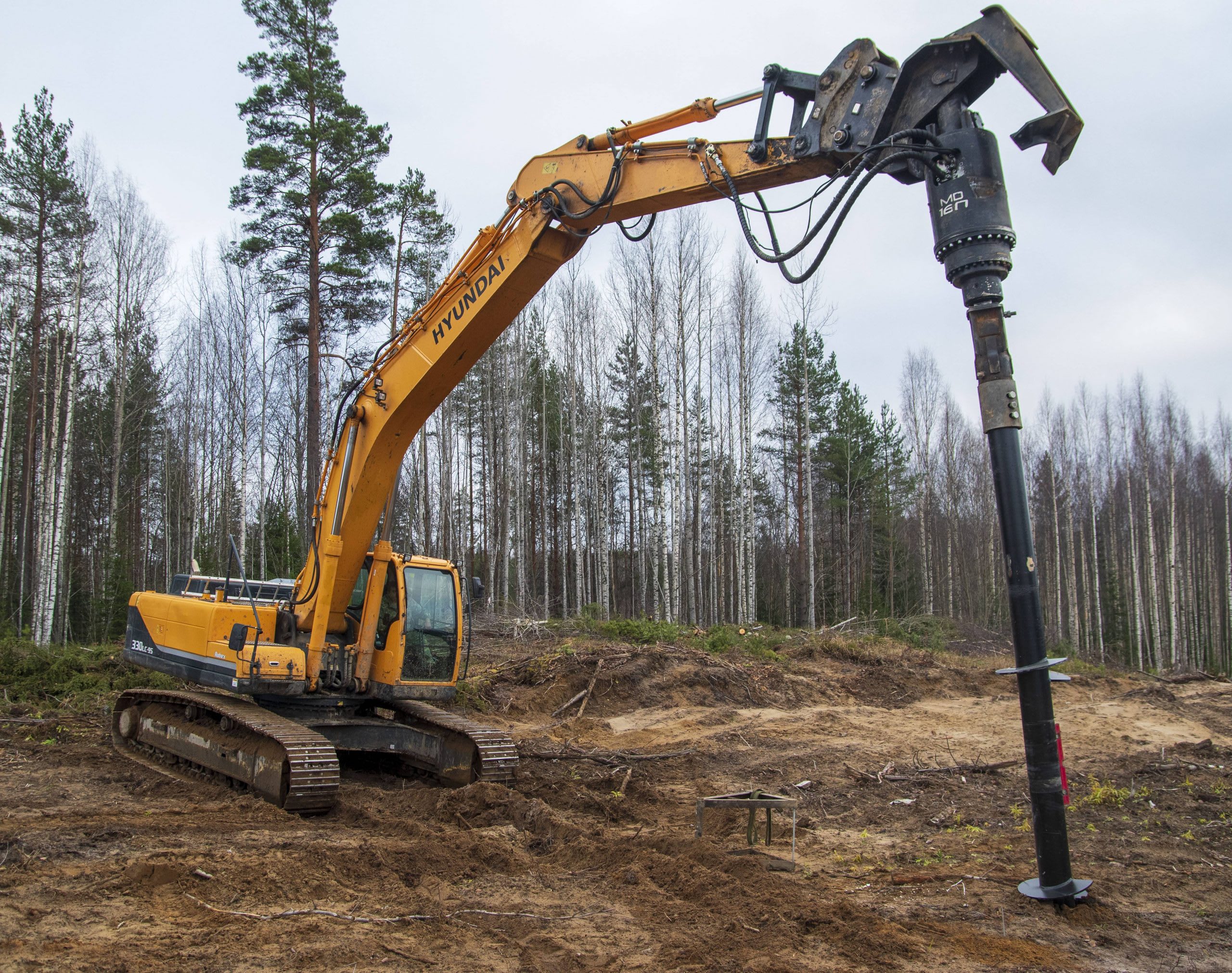Самое приятное, если можно так выразиться, занятие – закручивать металлические винтовые сваи с помощью экскаватора с гидровращателем. По словам Александра в таком случае за две смены можно целый пикет «закрутить» (в среднем, около 16 винтовых свай).