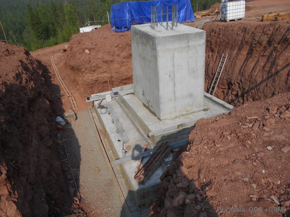 Особенным типом фундамента для опор является монолитный железобетонный фундамент. Такие фундаменты ООО «ЛЭМ» делало в Карелии для закрепления опор на скальных основаниях и на берегу реки Лена в Иркутской области – для установки тяжелой переходной опоры.