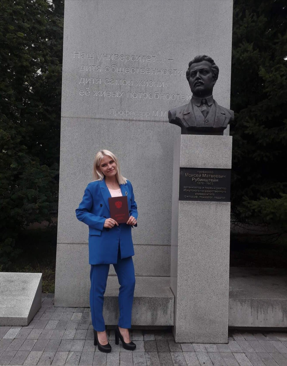 Тяжкими были только два года. Я успела поиграть в КВН, ЧГК (Что, где, когда?) поучаствовать в создании студенческого телевидения, была старостой (и в БГУ тоже), ещё работала какое-то время ведущей детских праздников параллельно, ходила на легкую атлетику и ходила с подругой на студфутбол. Там я как-то угадывала, кто победит, но мне мешала следить за игрой подруга, которой был интересен только вратарь. Четыре года прошли незаметно, мы были первые, кто защищали дипломы онлайн из-за коронавируса. У меня был диплом о судебной практике иркутских журналистов и прекрасный руководитель. Защитилась на пять без вопросов. Это был 2020 год. В сентябре я уже была студенткой магистратуры Байкальского госуниверситета. Профиль не меняла, но в магистратуре меня настиг еще один злой рок – математика. Мы решали экономические, управленческие, математические задачи, но мало читали. За два года мой мозг проснулся и вспомнил, что умеет еще и считать. Диплом мы защищали в аудитории летом 2021 года, у меня снова был прекрасный руководитель, который знал моего первого научрука. Это я узнала только тогда, когда уже писала магистерскую. Магистратура была проще, можно было работать, что я и делала.