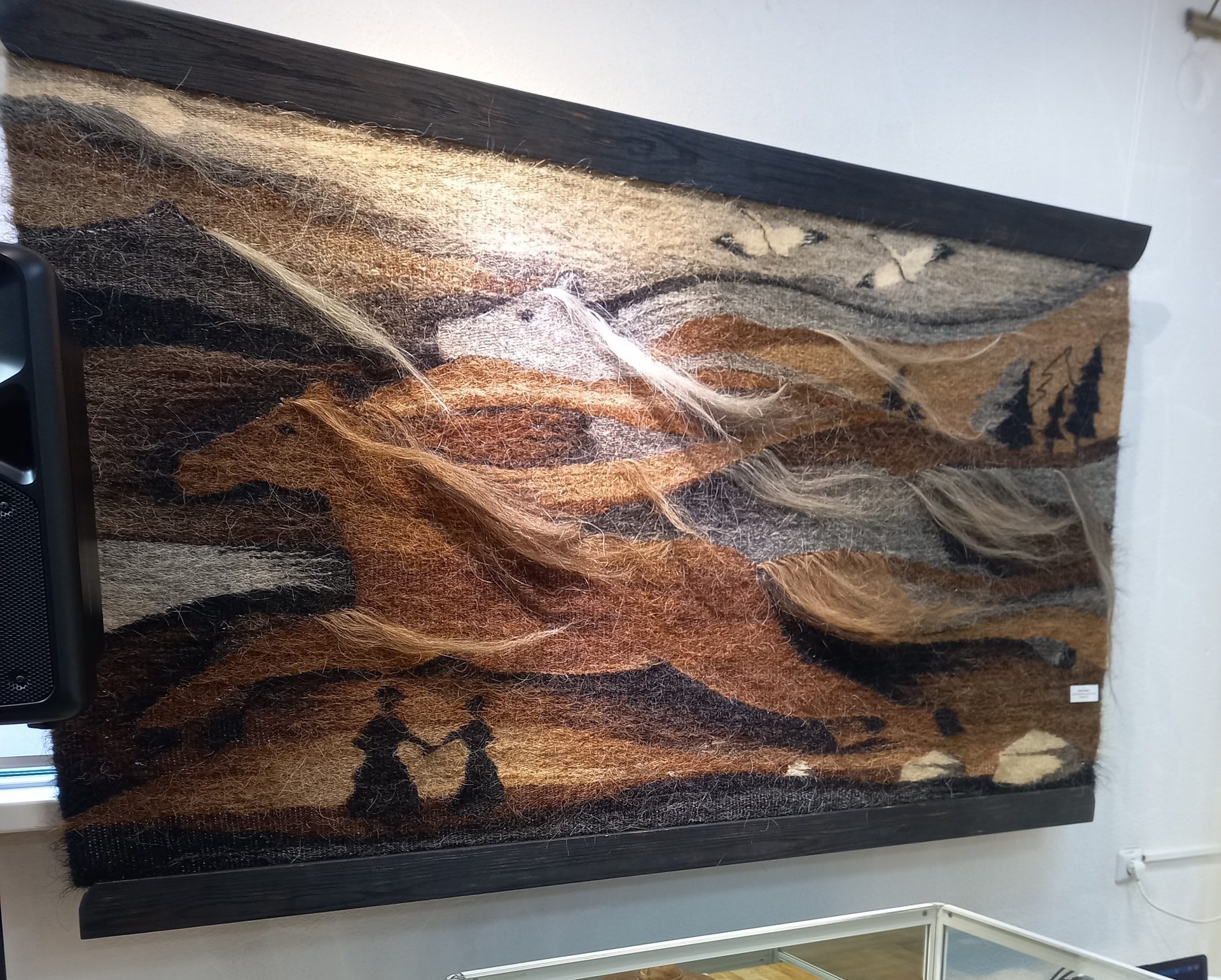 Картины, похожие на причудливые сны, бурятские легенды и предания, воплощенные в большие полотна. В Иркутске открылась персональная выставка бурятских гобеленов из конского волоса народного мастера Приангарья Екатерины Осиповой.