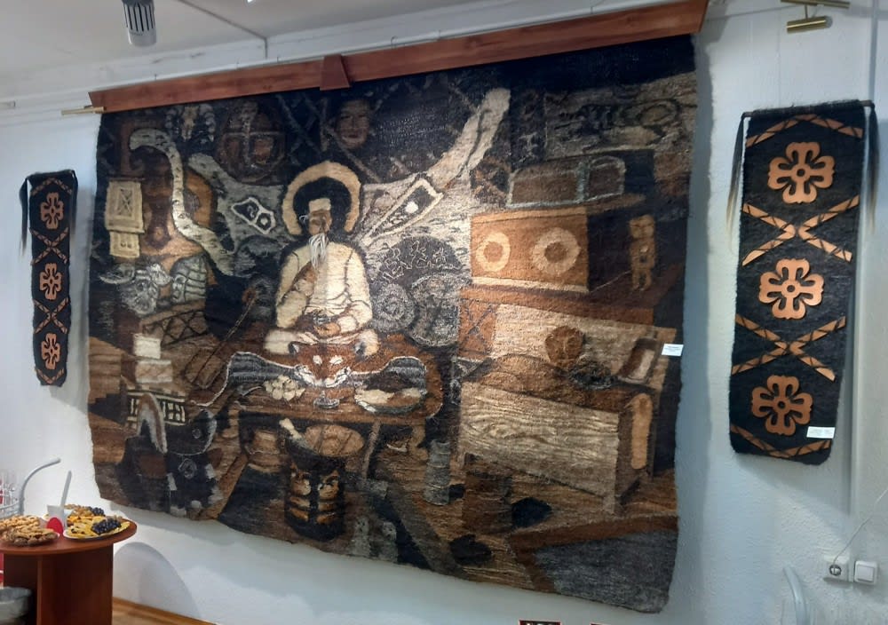 Картины, похожие на причудливые сны, бурятские легенды и предания, воплощенные в большие полотна. В Иркутске открылась персональная выставка бурятских гобеленов из конского волоса народного мастера Приангарья Екатерины Осиповой.