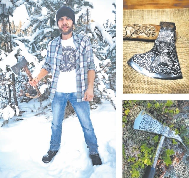А Сергей Ибрагимов после службы пожарным стал изготавливать топоры, объединив резьбу по дереву и металлу. Обычные орудия труда его стараниями превращаются в настоящие произведения искусства. На рукоятках и лезвиях оживают истории скандинавской, славянской и кельтской культуры. Каждый символ на инструменте – тайный язык далеких предков. На один топор, поясняет мастер, уходит от двух недель до месяца работы. Кроме топоров, он делает деревянные подарочные ящики к ним и щиты для полного комплекта.