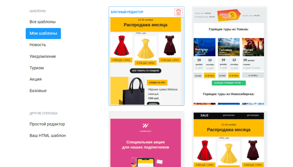 Функционал для создания писем в РуСендер отлично продуман. С этим справится даже новичок, а опытный маркетолог найдет полезные инструменты для персонификации конкретного шаблона или даже создания нового с нуля.