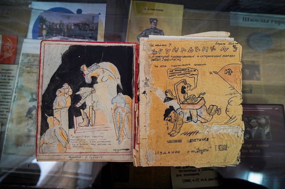 – Редактором был Аркадий Пржиалковский, который носил псевдоним Суворов. Мы гордимся нашей экспозицией о годах войны. Казалось бы, чем могли усольские школьники помочь фронту? Оказывается, было чем. Они помогали бойцам, которые лечились на курорте, преобразованном в эвакогоспиталь. В совхозах дети собирали урожай, строили коровники, свинарники, прокладывали линии электропередач, о чем рассказали даже по центральному радио. Учителя трудились самоотверженно. И, конечно, многие педагоги и вчерашние ученики отдали свои жизни за Родину, – напоминает Сергей Шаманский.