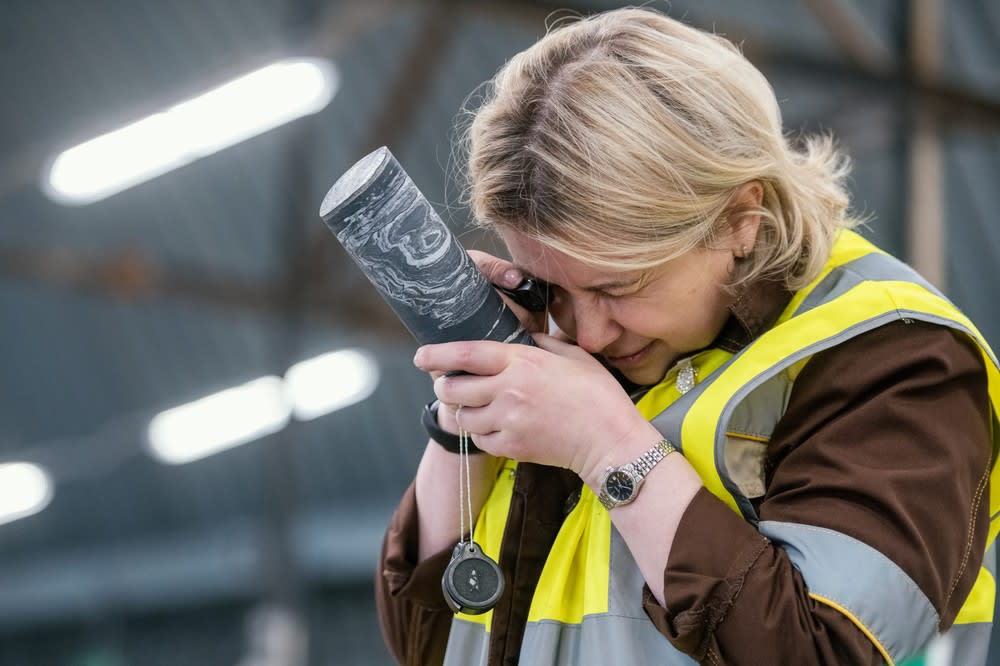 Рабочий день Светланы длится 12 часов. Много времени она проводит в цехе геологической документации керна, организованного по конвейерной схеме. Керн – это отобранный из буровых скважин материал, который является уникальным первоисточником обширной информации о геологическом строении недр, о вещественном составе горных пород и пр. Использование кернового материала позволяет получить точные данные о месторождении, подсчитать запасы.