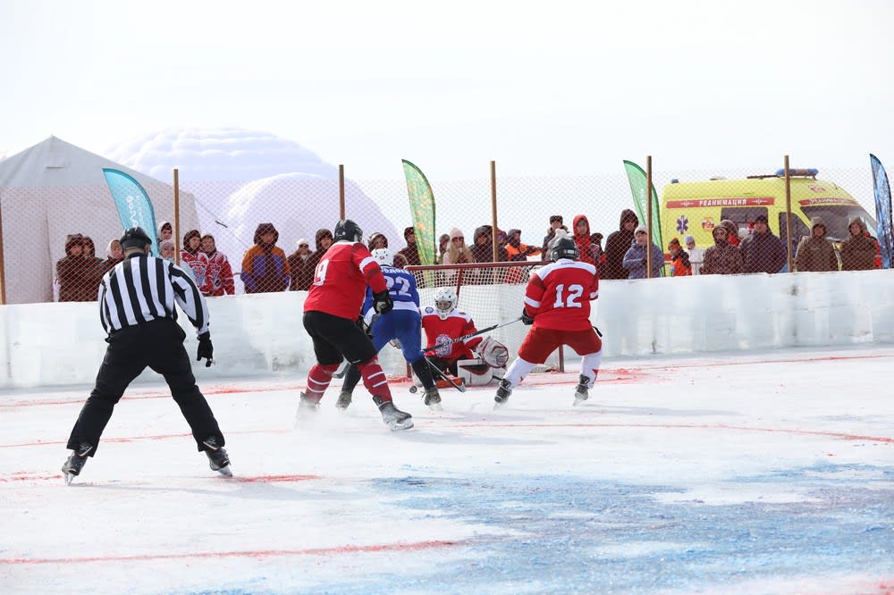 Матч по хоккею с шайбой с участием признанных мастеров, чемпионов мира, Олимпийских игр, обладателей Кубка Стэнли прошел 8 марта на льду озера Байкал близ поселка Большое Голоустное Иркутского района.