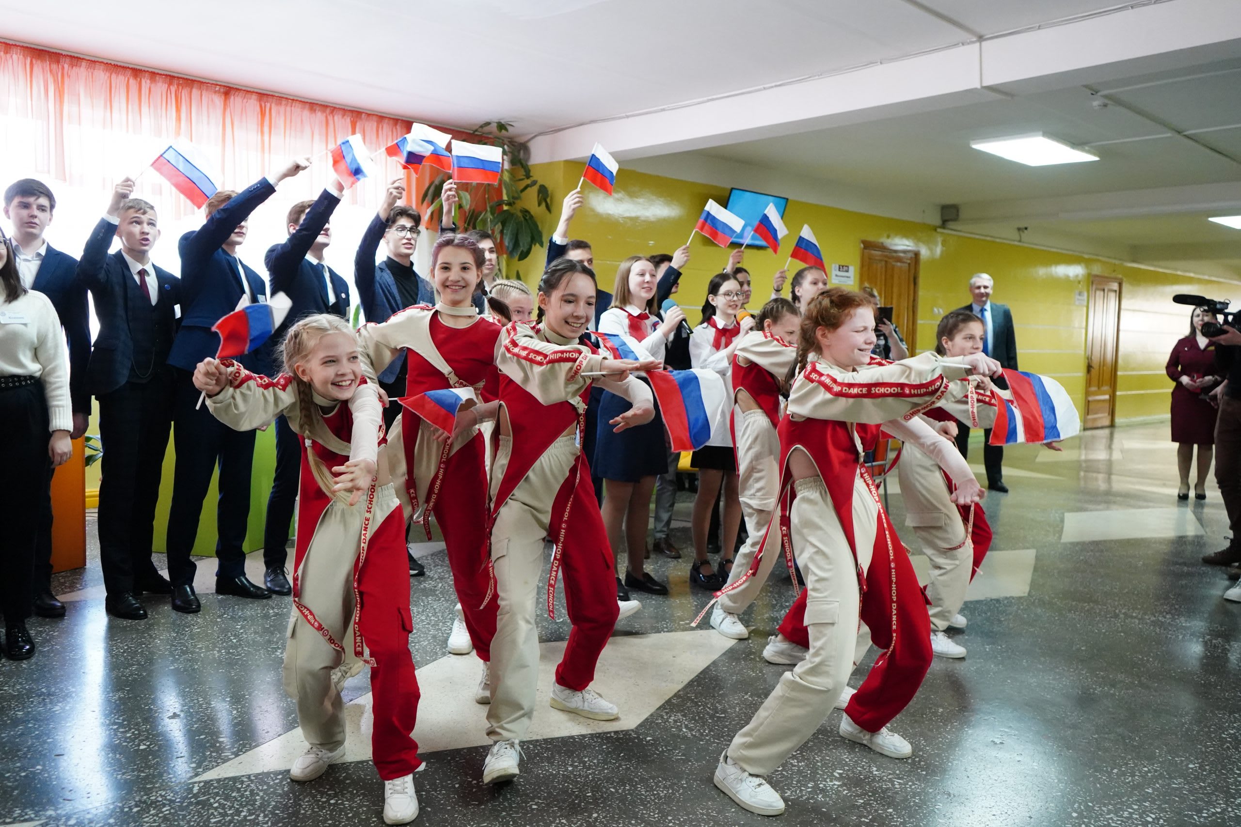 Перед хоккейным матчем на льду Байкала губернатор Игорь Кобзев и высокий гость побывали на катке в Николе, посетили Большеголоустненскую школу.