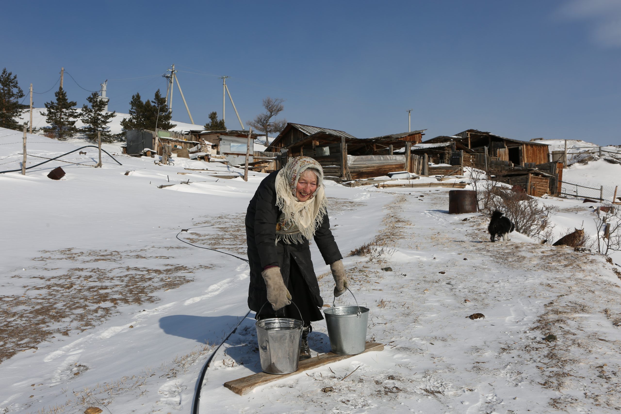 Бывает, к пенсионерке неделями никто не заглядывает. Местные мужики иногда заскочат ненадолго, проверят – жива-здорова баба Люба, а потом дров по-быстрому нарубят или оставят рыбки свежей и дальше по своим делам едут. Но скучать Мореходовой некогда. Сейчас у Любови Николаевны восемь голов крупного рогатого скота, а еще три собаки, три кошки и куры. Всех надо накормить, а самое сложное – напоить. Воду приходится носить в ведрах из проруби, поднимаясь по крутому склону.