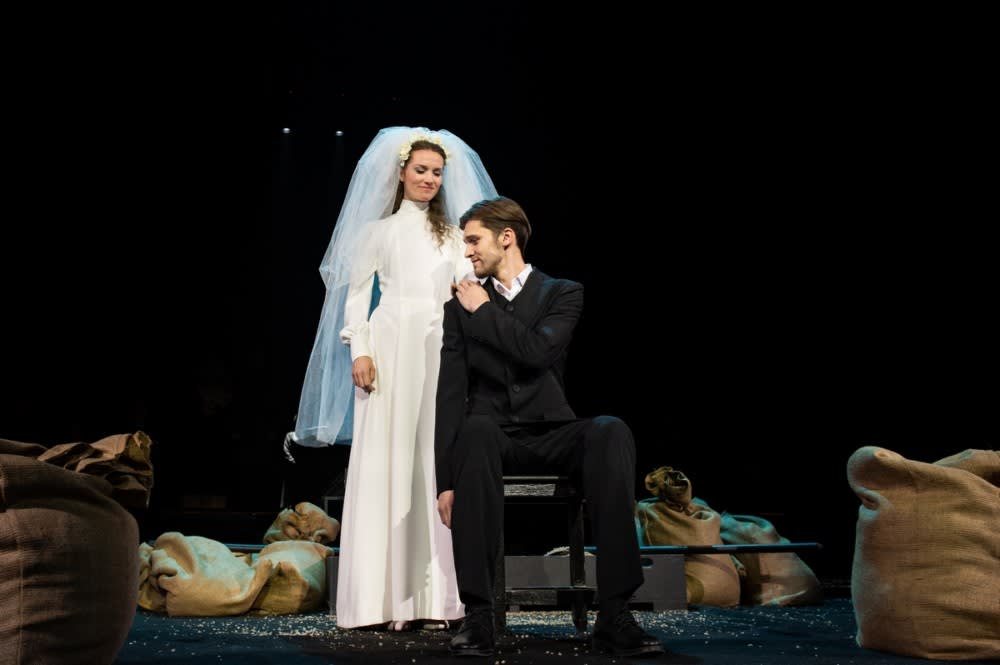 Постановка наполнена метафорами, которые помогают нам раскрыть характеры героев и их взаимоотношения. Например, Кирсанов-старший (Артем Довгополый) играет на своей молодой любовнице Фенечке (Алена Бочкарева, Ольга Гарагуля), как на виолончели. Голая спина девушки и поднятая вверх коса – гриф в темноте сцены смотрятся очень эффектно.