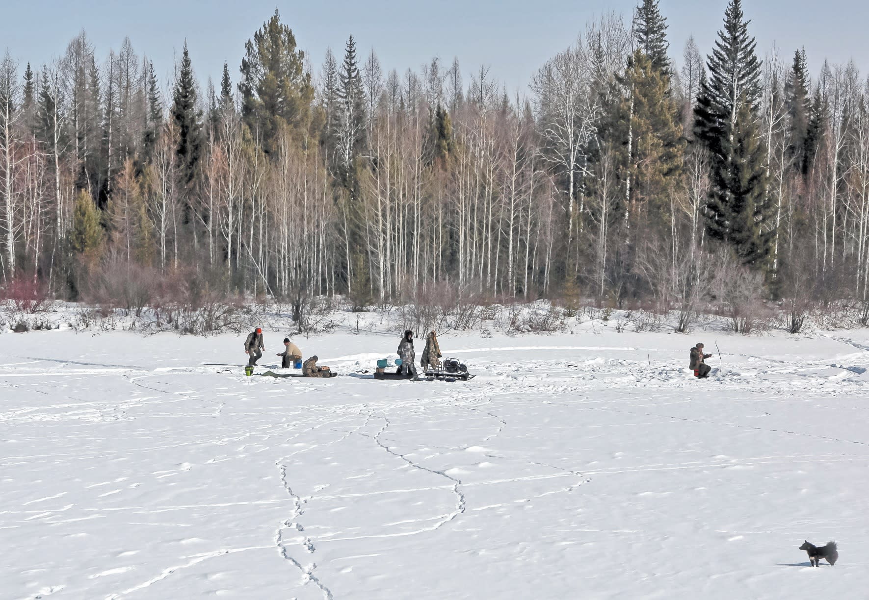 На берегу Киренги в эти дни необычно оживленно. Соотношение рыбаков на реке примерно шесть к одному не в пользу местных. Пришлых выдают экипировка, разноцветные стульчики и карематы. Для бдения на льду эвенки обычно используют небольшие шкуры, на которых сидят или лежат возле лунок, высматривая в воде рыбу, чтобы подсунуть ей крючок. Пойманного хариуса рыбаки условно делят на три категории – трофейный, сковородочный и гостевой. Более-менее крупного жарят, солят сами, мелким угощают. Трофейные экземпляры начнут попадаться к концу апреля.