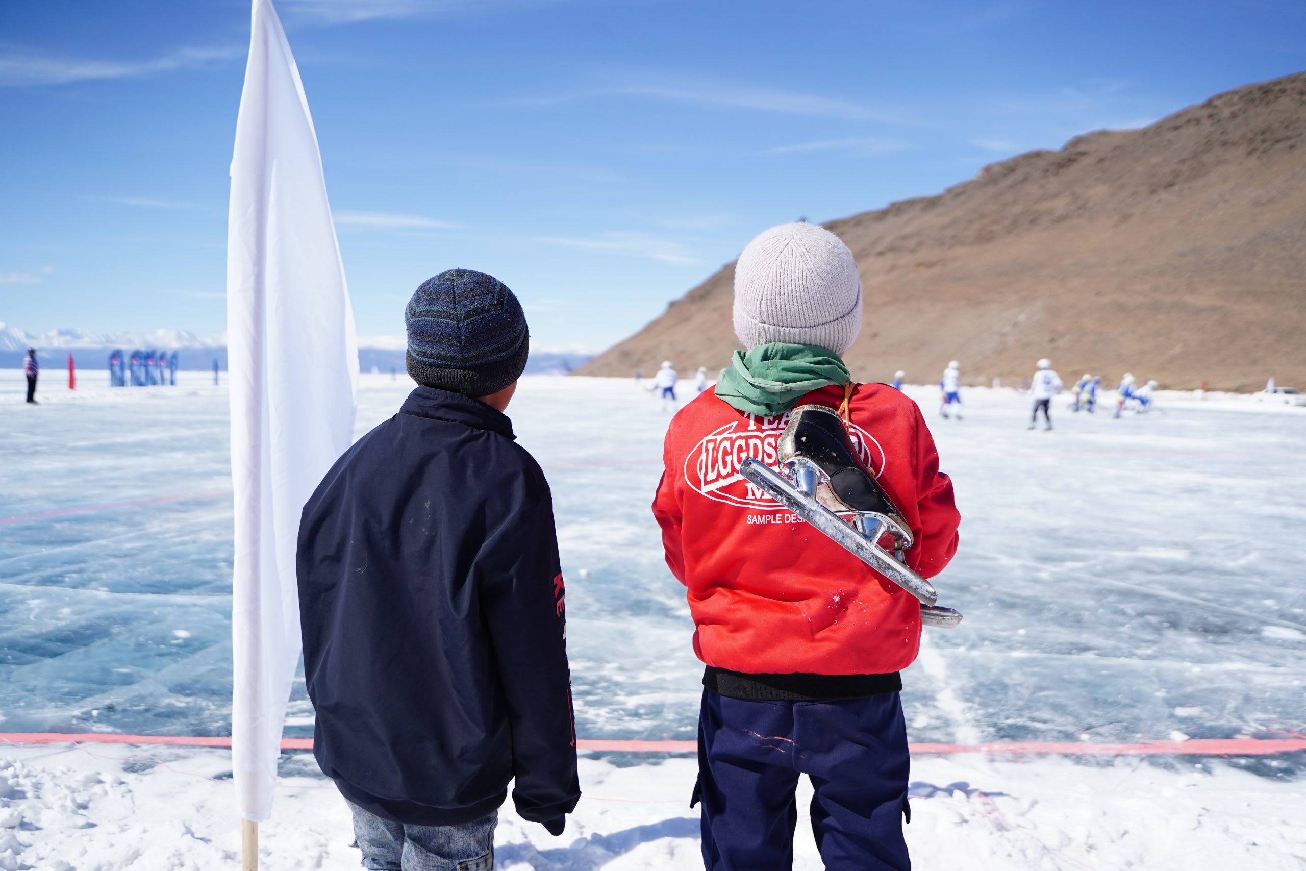 Второй, заключительный этап турнира «Кубок двух озер» прошел на льду озера Хубсугул. 4 апреля погода для хоккея выдалась идеальной – солнечная и в меру теплая, что обеспечило хороший лед для скольжения. Посмотреть на игру пришли жители пограничного поселка Ханх, для которых международный турнир – событие знаменательное. Тем более что многие накануне активно помогали готовить ледовое поле для игры. Вооружившись тяпками и лопатами, вместе с хоккеистами местные жители очищали лед от снега.