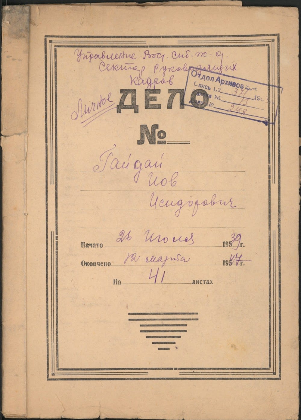 В 1939 году Иов Исидорович занимал высокую должность начальника сектора учета труда и зарплаты отдела учета Восточно-Сибирской железной дороги.