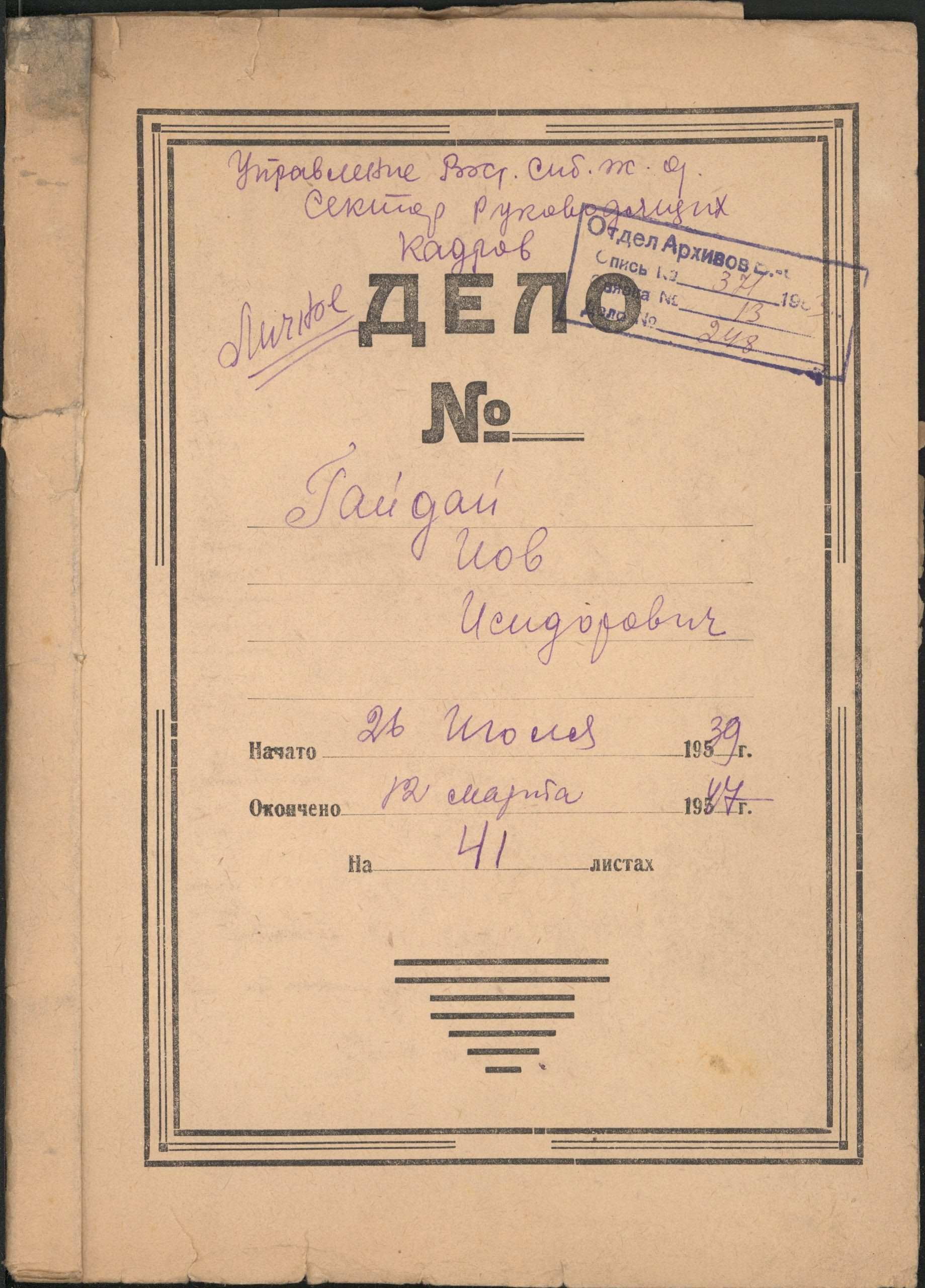 – Личное дело Гайдая было предоставлено архивом ВСЖД, – продолжает главный архивист Ирина Бондарь. – Анализируя справки, можно узнать, сколько работ сменил Иов Исидорович. Его трудовая биография началась с Саблино-Знаменского сахарного завода, куда его в 1897 году приняли рабочим. Затем трудился на мукомольной мельнице на Полтавщине. Отдельной строкой в 1906 году вписано новое социальное положение – каторжанин. В 1913 году первое повышение – старший рабочий стройучастка Амурской железной дороги. Следующие десять лет можно считать взлетом в карьере Иова Гайдая. С 1913 по 1923 годы он поднялся по служебной лестнице с должности конторщика до бухгалтера службы тяги Управления Амурской железной дороги. Позднее в автобиографии на этот счет Иов Исидорович напишет: «Причина перехода с работы физического труда на труд умственный – приобретенные знания путем самообразования в период заточения».