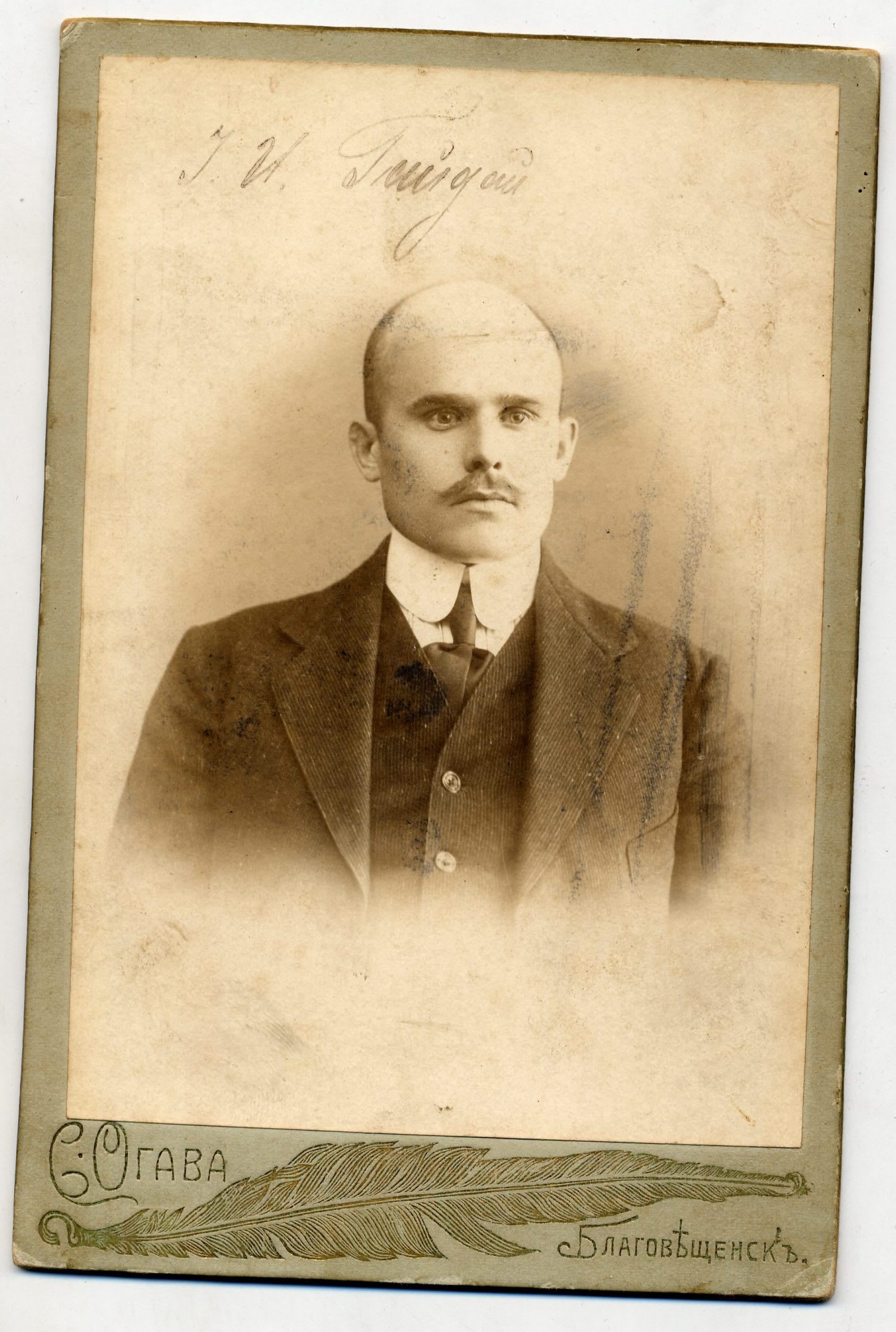 – Статейный список датирован 1909 годом. В Иркутске Гайдай надолго не задержался, был отправлен в Амурскую область на строительство железной дороги. Срок каторги истек в апреле 1913 года, и Гайдай осел в городе Свободном, там же женился на Марии Ивановне Любимовой. Весьма примечательна история знакомства Иова и Марии. Рядом с Гайдаем отбывал каторгу некто Егор Любимов из Рязани. Он написал домой письмо, заочно сватая сестру Марию грамотному и трудолюбивому Гайдаю. В довесок прислал родным фотографию потенциального зятя. Сначала Марии, ее сестрам вид жениха не понравился, главный аргумент: «Он же лысый!». Тем не менее в итоге Мария согласилась выйти замуж и уехала на Дальний Восток. Кстати, волосы Гайдай потерял за время каторги – не то сказалась наследственность, не то климат и недостаток витаминов. В личном деле ссыльный запечатлен с роскошной шевелюрой. На момент бракосочетания Иову Исидоровичу исполнилось 32 года, его жене было 26.