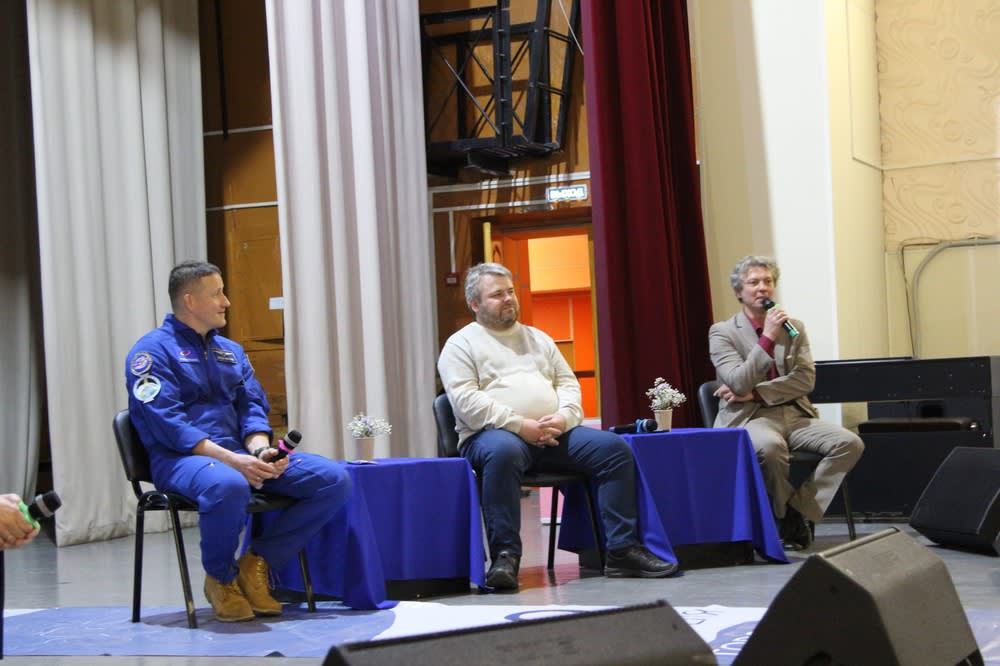 Конечно, слушателей интересовали многие мелочи космических полетов, о которых не скажут по телевизору. И они активно задавали космонавту вопросы: как проходит адаптация после полета, почему приземлившегося космонавта несут на носилках в сидячем положении?