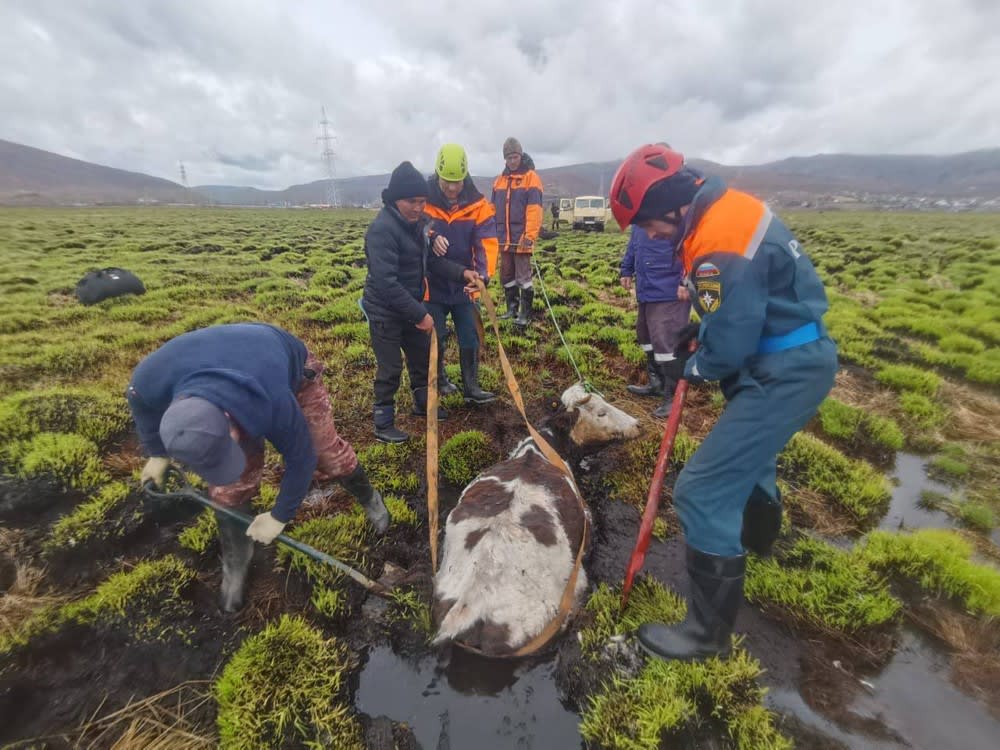 На прошлой неделе спасатели вызволили из болота корову недалеко от поселка Култук Слюдянского района. Об этом 22 мая 2023 года сообщила пресс-служба Байкальского поисково-спасательного отряда.