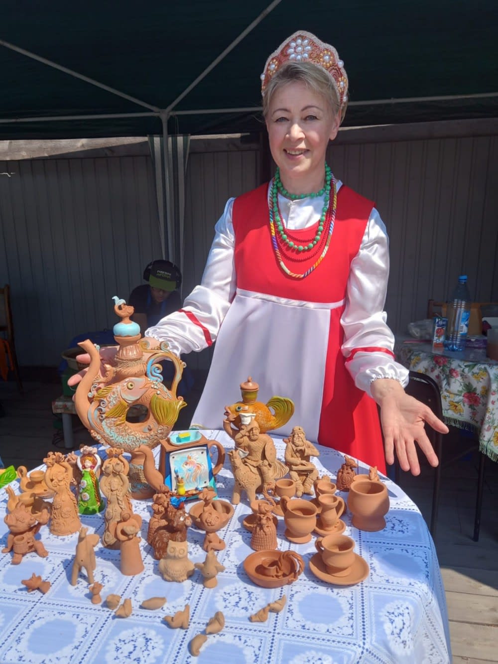 Валентина Бирюк показывала мастер-класс по керамистике. Женщина – преподаватель детской школы искусств им. А.В. Кузакова. На выставке присутствовали целые династии. Даниил Спиридонов с сыном Леонидом делают из дерева игрушки. Зоя Наумова, мастер народной куклы в пятом поколении, представила на суд зрителей куклы-обереги.